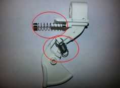 La Asamblea General de diapositiva y el gatillo debe mirar como se muestra (nota el resorte se coloca en la bisagra y deslizamiento). No perder los muelles que necesitaban para el montaje.