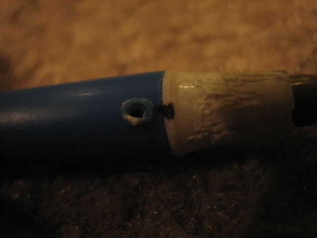 hacer un agujero a través del tubo de la pluma y tapa con el clavo caliente. (aquí es donde también se puede utilizar una broca pequeña.)