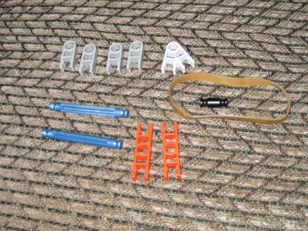 arma muy simplePaso 1: las piezas que necesitaPara construir este arma necesita 20 conectores rojo 4 conectores naranja 2 conectores amarillos 1 conector gris 6 conectores verde 7 Palos verdes 4 palos blancos 8 palos azul 3 palos amarillo 2 palos roj
