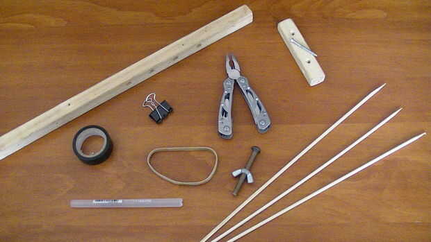 cómo hacer un shooter de pincho de bambú los lanzamientos con precisión para más de 40 pies y las municiones para más de 50-60 pies.Paso 1: Reunir elementos Las cosas que usted necesitará:1 Tijeras2 globo3 pluma bic de4 goma5 brochetas + o balinesPas