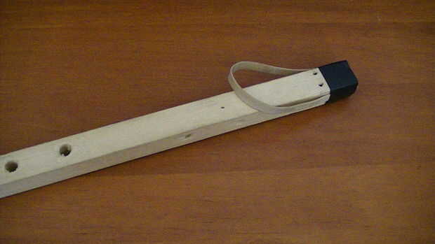En este paso, necesitará cinta la goma en la parte frontal del palo de madera