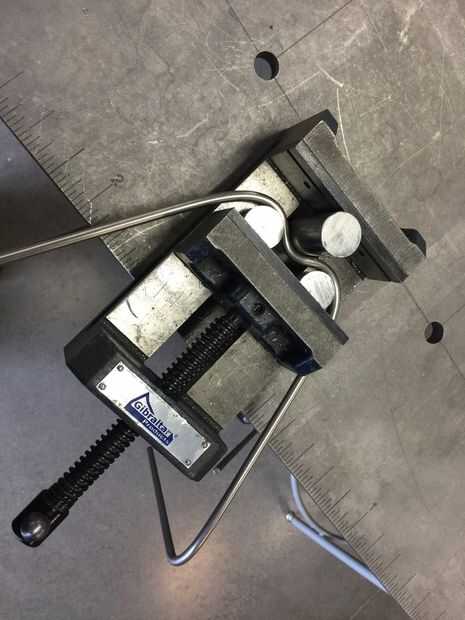 Esta máquina es pesada! Tendrás un lugar para descansar esta cosa. Puede ponerlo para arriba-lado-abajo y descansar en la tolva (se diseño para estar parado para arriba-lado-abajo). Pero si quieres sacar manos libres, usted querrá construir un stand. Este soporte está construida en acero de 3/8" y algún doblez simple utilizando un tornillo de banco.