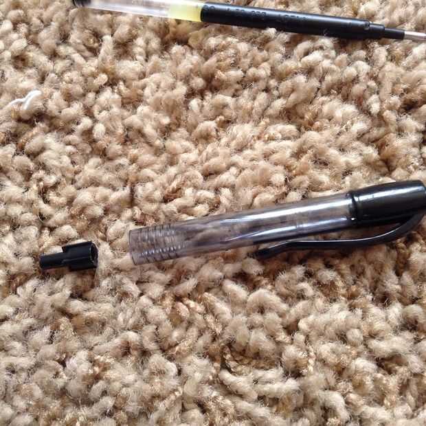 esto es un arma de simple pluma puede hacer sin herramientas especiales en menos de 5 minutos. Es divertido de usar y tira bastante más.Paso 1: Desarmar la pluma Tirón justo sobre la empuñadura hasta el extremo delantero todo salte. Para obtener la t
