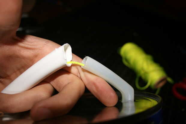 Tomar la cáscara grande que se basa en el cacahuete y corte un orificio a lo largo de la línea central. Este agujero debe ser sólo lo suficientemente grande como para que tu lente establecer en.