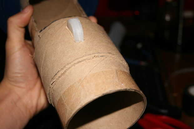Adhiera las tres bisagras en su lugar, dos en los lados de la jarra pequeña que se acopla al mango y uno en la parte superior de la funda exterior que se desliza en la parte superior del cañón.