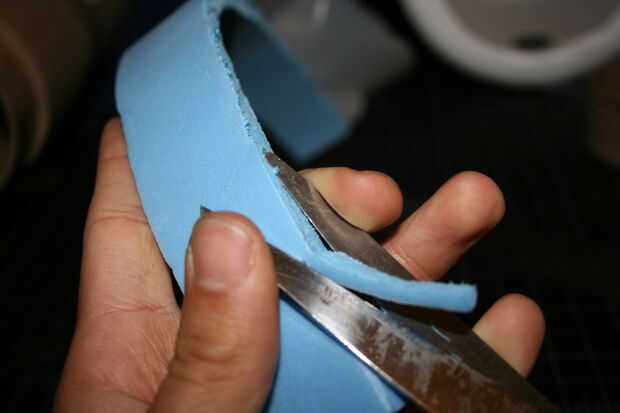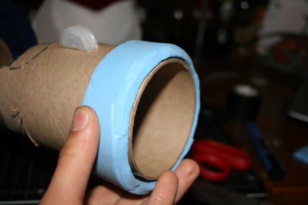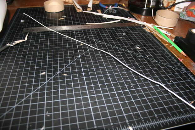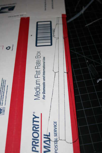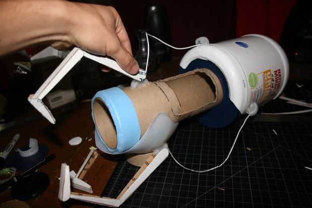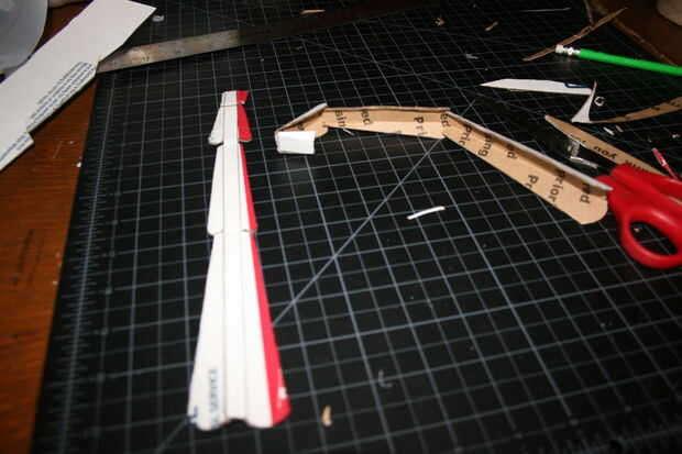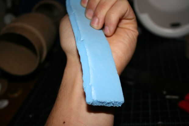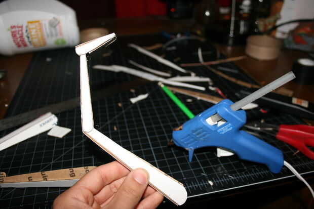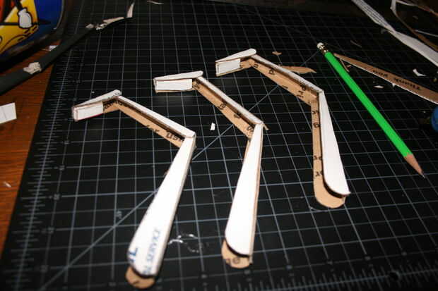 Los brazos están hechos de un cartón delgado. Cada una es hecha de una sola pieza, cortar en este patrón y doblada. Pegamento abajo todas las juntas y las pestañas por lo que mantiene su forma de brazo.