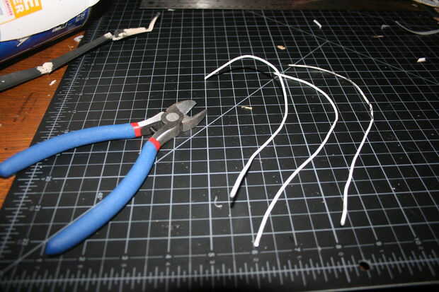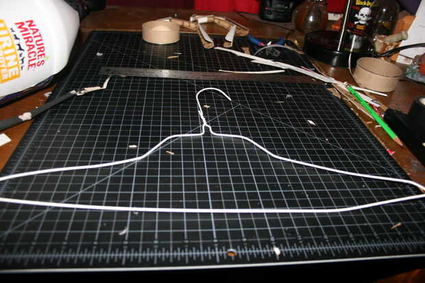 Los cables están hechos de secciones de perchas de alambre doblado en forma.