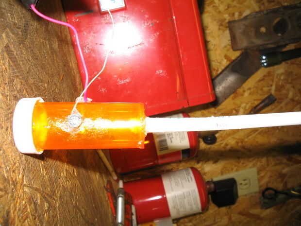 Paso 4:Then tomar los cables de la bujía y conecte a los tornillos y prueba a ver si despierta si no ajusta los tornillos hasta que trabaja entonces los cables de los tornillos y PVC pega los tornillos en su lugar, esto también sella la botella mejor y luego vuelva a conectar los cables a los tornillos.