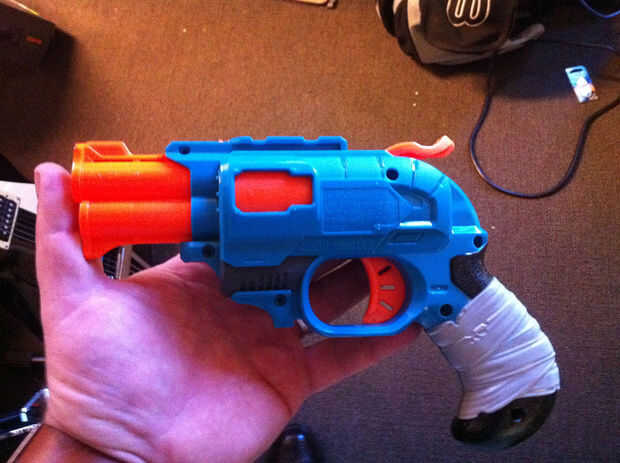 tengo un amigo que es realmente en My Chemical Romance. En su video musical de NaNaNa tienen pistolas de rayos. He hecho una para su cumpleaños. Era una pistola estilo occidental pero moldeado forma cerradura sobre el barril para el aspecto que tiene