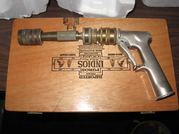 habiendo comenzado haciendo simples apoyos para sesiones de fotos y accesorios de pintura de cuerpo, estoy embarcando ahora en hacer algunas otras armas.Que quería hacer un espacio blaster o pistola de rayos, y pensé que sería divertido para tratar d