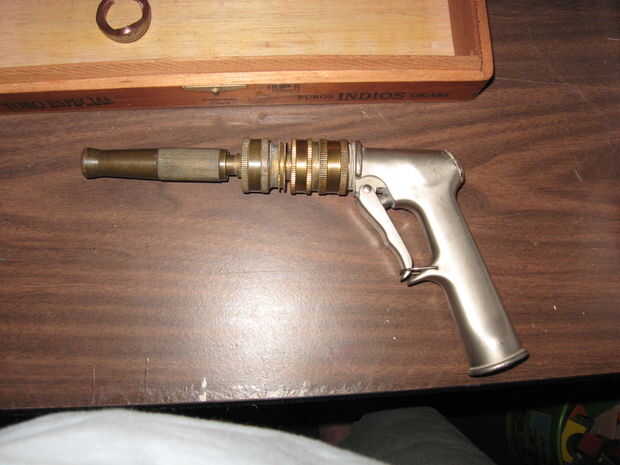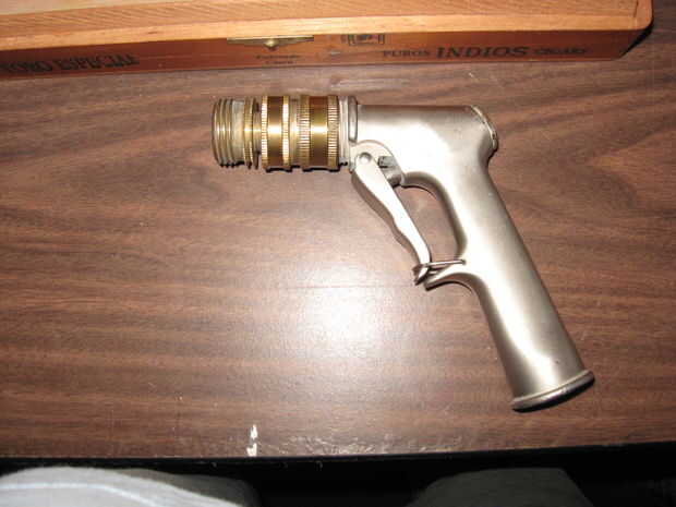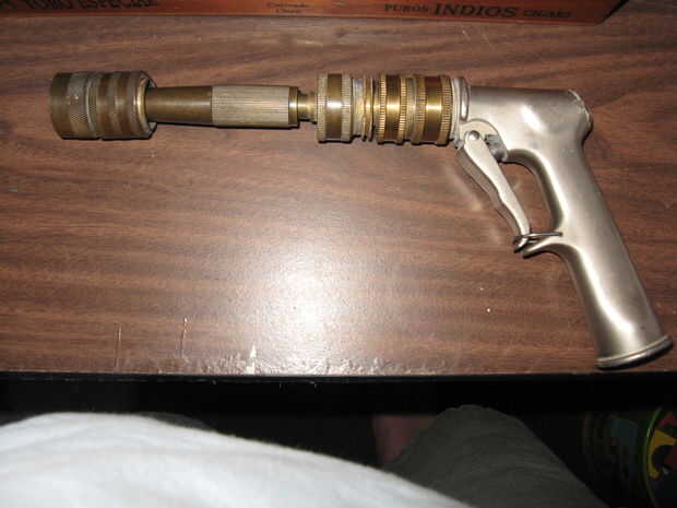 Hace varios años un conocido me dio una pistola de juguete de steampunk. Noté que hubo un disparador que se moviera y el cañón frontal girada pero no creo que mucho de él. Parecía que iba a hacer algo, pero no pagar que mucha atención y se sentaron e