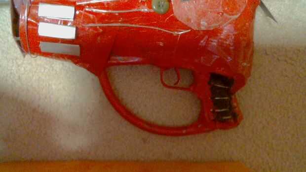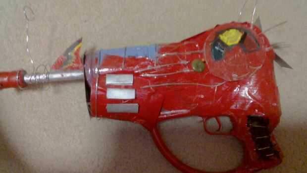 tengo un amigo que es realmente en My Chemical Romance. En su video musical de NaNaNa tienen pistolas de rayos. He hecho una para su cumpleaños. Era una pistola estilo occidental pero moldeado forma cerradura sobre el barril para el aspecto que tiene