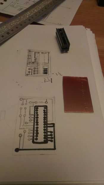 En primer lugar tuve que diseñar mi. En la placa base ejemplo sabía que las conexiones que necesitaba de la viruta y que no lo hice. También medí el interior compartimiento de mi arma y un cobre de la placa al tamaño exacto del corte. Ahora sabía qué área tenía que trabajar con.