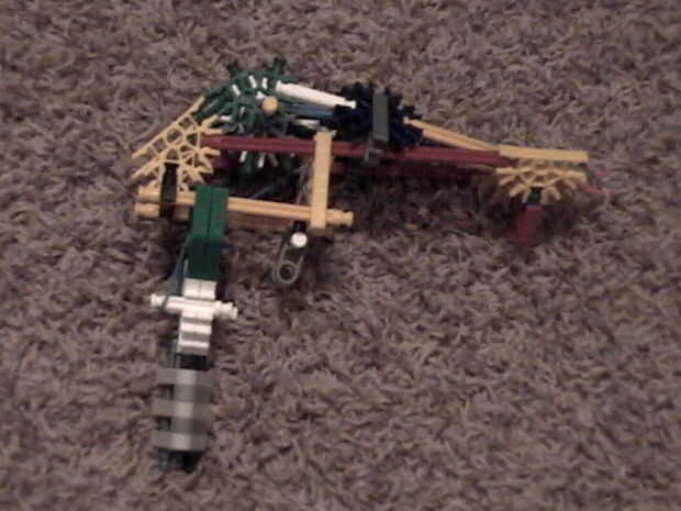 Este es un diseño de pistola goma simple y eficaz a diferencia de otras que he visto.La diferencia es que es accionado por el motor de k'nex lo que permite a múltiples bandas para dispararse simultáneamente, en lugar de hacer uno a la vez :)--No olvi