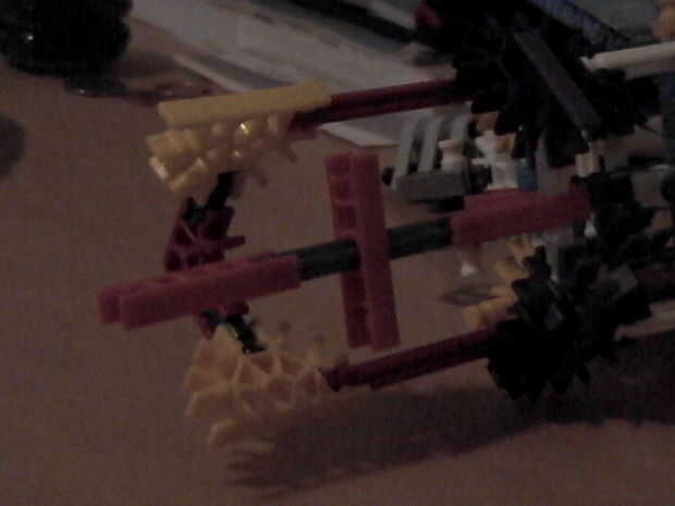 Este es un diseño de pistola goma simple y eficaz a diferencia de otras que he visto.La diferencia es que es accionado por el motor de k'nex lo que permite a múltiples bandas para dispararse simultáneamente, en lugar de hacer uno a la vez :)--No olvi