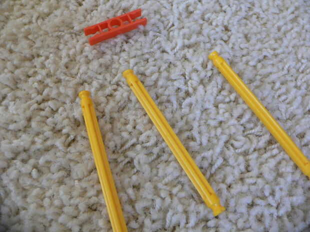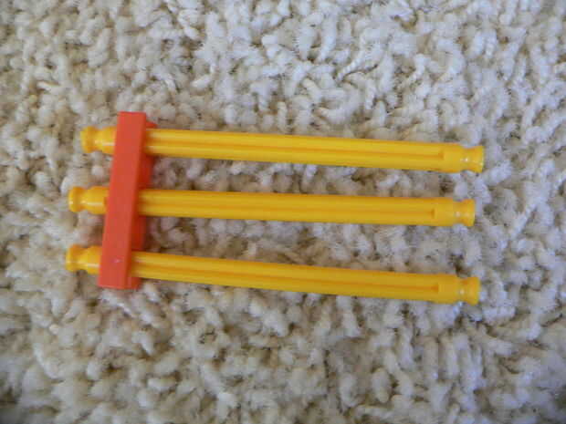 este paso es sencillo tomar las 3 barras amarillas y 1 de los conectores naranja y atarlos para que tenga una varilla en cada lado y uno en el medio.