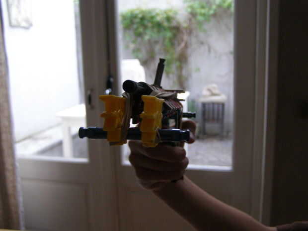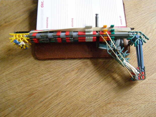 esto es una pistola de KVG muy fácil para hacer. Sólo utiliza alrededor de 60 expedición. También pueden disparar 15-26 pies. Espero que disfrutes!!!!!! : DPaso 1: edificio. Todo lo que ves en las fotos construir.Paso 2: Conectar y bandas. Conecte la