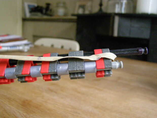 esto es una pistola de KVG muy fácil para hacer. Sólo utiliza alrededor de 60 expedición. También pueden disparar 15-26 pies. Espero que disfrutes!!!!!! : DPaso 1: edificio. Todo lo que ves en las fotos construir.Paso 2: Conectar y bandas. Conecte la