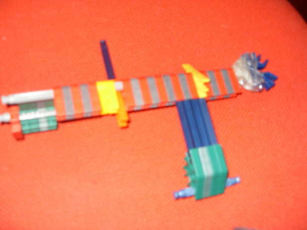 arma K'NEX muy Simple. Algo divertido para tirar con el. PRECAUCIÓN: no se hace responsable de ningún daño o daños causados por construcción o tiro de esta arma.Paso 1: montaje Explica por sí mismo.Paso 2: Montaje (cont.) Usar una cuchillo/tijeras o