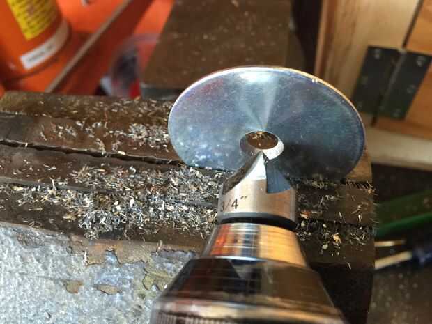 Muy cuidado, es fácil hacer sobre las arandelas y el viento para arriba con un conjunto de disquete. Vas a tener que hacer algún juicio del globo ocular. Usted puede terminar arruinando una o dos o las arandelas pero no perder la fe, usted podrá averiguar. Recuerde que puede siempre perfore la lavadora dos o tres veces más que exceso de taladro y hacer el agujero demasiado grande en la lavadora. Así que Tómese su tiempo y prueba-ajuste el tornillo de vez en cuando para asegurarse de que es perforar a la profundidad correcta.
