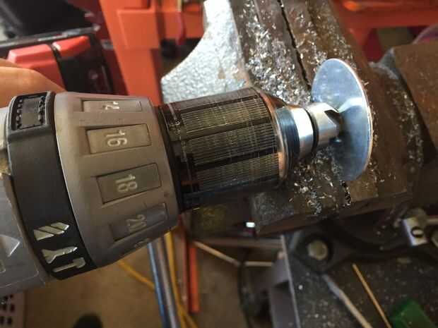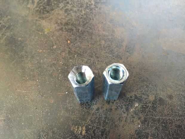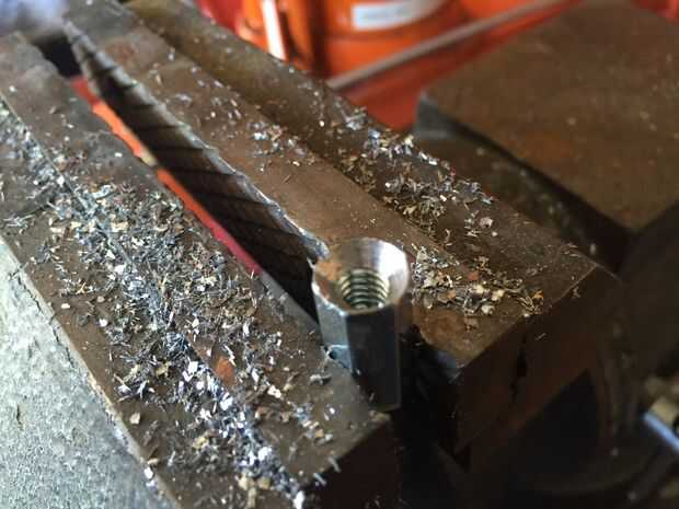 Perforé cincuenta fuera montado en un momento. Las arandelas y las tuercas de acoplamiento se colocaron en un tornillo de banco y perforar sistemáticamente hasta que todos ellos fueron terminados y listos para el siguiente paso.