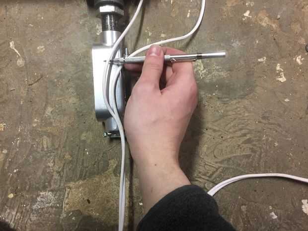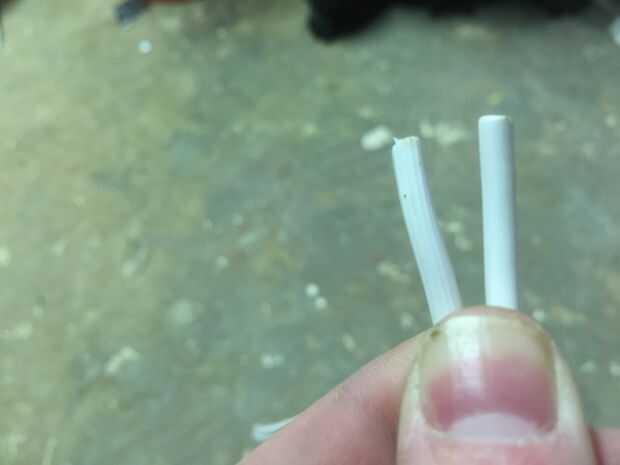 Pone el cable encima de la pistola y corte el cable caliente, no el neutro aproximadamente donde estará el interruptor. El lado caliente es la punta delgada y el hilo sin crestas.