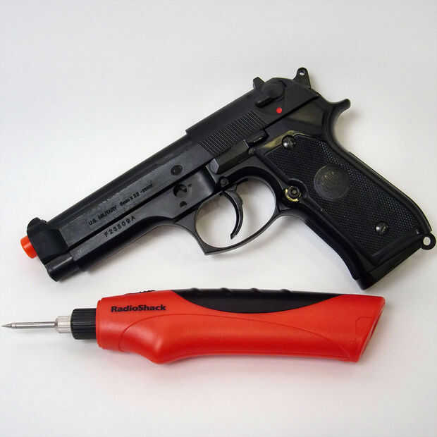 No se recupera hasta ahora: una mano firme, un objetivo de cuidado, un cantidades peligrosas de plomo... soldadura y disparar un arma de fuego tienen mucho en común. Es muy fácil realizar tu propio, todo lo que necesitas es una pistola de aire comprimido y una mano, soldador con pilas y puede hacer su propia pistola de soldar.