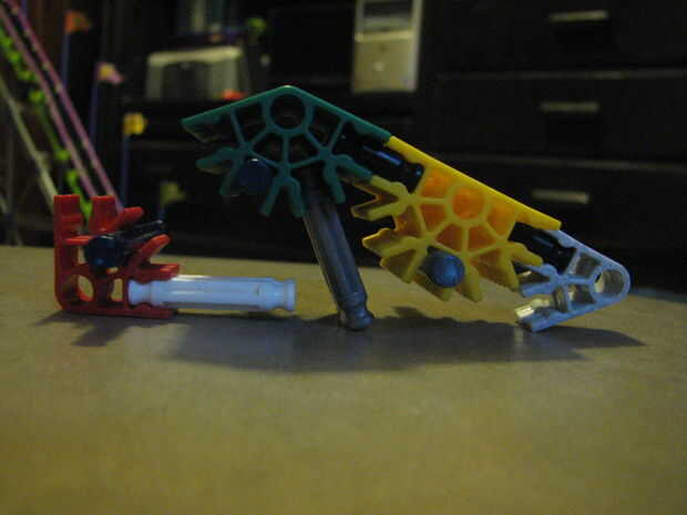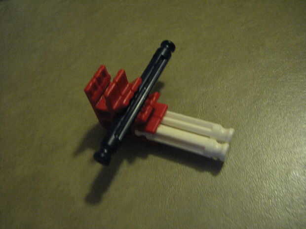 es un simple arma decidí construirPaso 1: cuerpo Paso 2: gatillo La pieza blanca es la seguridad, la retirada cuando esté listo para disparar y enrosque el conector blanco/púrpura en el gatillo, por ello permitiendo que la corredera gatillo a través