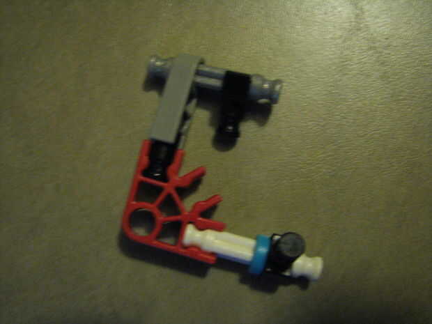 es un simple arma decidí construirPaso 1: cuerpo Paso 2: gatillo La pieza blanca es la seguridad, la retirada cuando esté listo para disparar y enrosque el conector blanco/púrpura en el gatillo, por ello permitiendo que la corredera gatillo a través