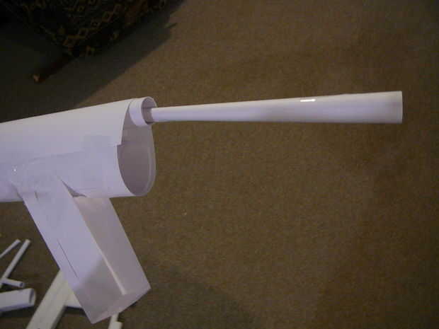 es un simple arma decidí construirPaso 1: cuerpo Paso 2: gatillo La pieza blanca es la seguridad, la retirada cuando esté listo para disparar y enrosque el conector blanco/púrpura en el gatillo, por ello permitiendo que la corredera gatillo a través