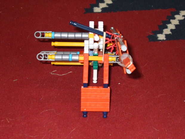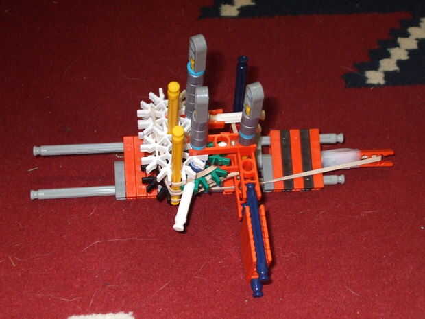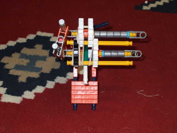 Este es un diseño de pistola goma simple y eficaz a diferencia de otras que he visto.La diferencia es que es accionado por el motor de k'nex lo que permite a múltiples bandas para dispararse simultáneamente, en lugar de hacer uno a la vez :)--No olvi