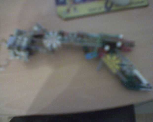 Hola damas y caballeros, yo estoy aquí para presentar a mi K'nex totalmente poderosa pistola que dispara tan rápido que no puede siquiera Ve el proyectil deja el arma. Ideal para blancos de papel fuerte y gran precisión. La gama es de unos 15 metros