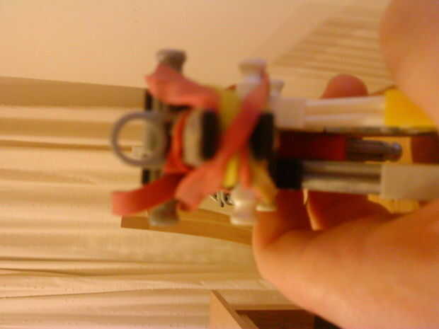 Este es un diseño de pistola goma simple y eficaz a diferencia de otras que he visto.La diferencia es que es accionado por el motor de k'nex lo que permite a múltiples bandas para dispararse simultáneamente, en lugar de hacer uno a la vez :)--No olvi