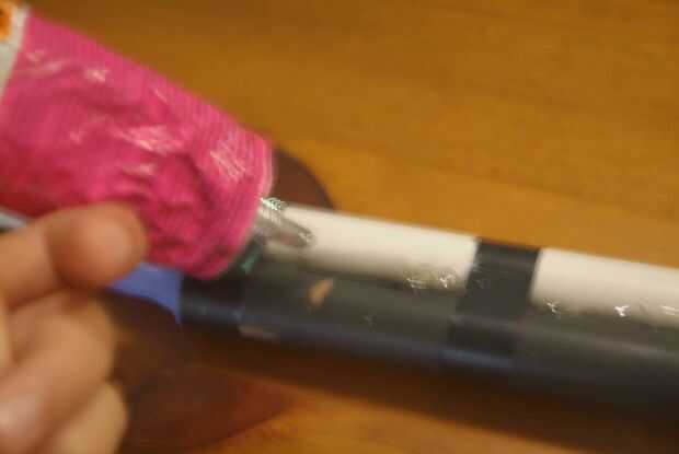 Esta es la vez fueron correa el tubo de 18 cm para el largo tubo con cinta y pegamento estupendo como lo hice.