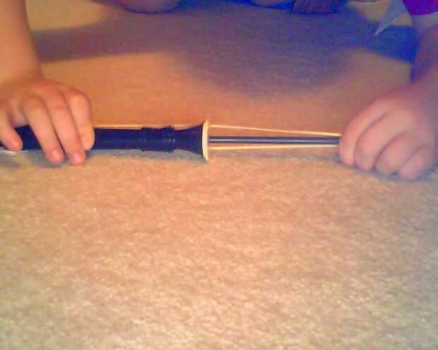 Ahora, para acabar, ajuste la banda de caucho alrededor a la parte inferior donde el tipo de grabador de ramas, lo enrolle alrededor de eso y hacer! Ahora disparar a todo lo que haces es insertar la limpiadora o cualquier cosa que se introduzca, en a través de la tapa, tire hacia atrás y! Esto puede ser capaz de causar lesiones o daños, no tendrá responsabilidad para cualquiera.