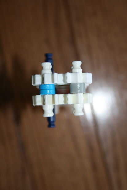 hice esto cuando me aburría, no estoy 100% seguro que este es el más pequeño así que por favor el post si no es (sólo utiliza 4 piezas)Paso 1: lo que usted necesita esto es lo que necesita:conector blanco 1 (8 ranuras)barra azul 11 barra negro / cone