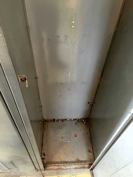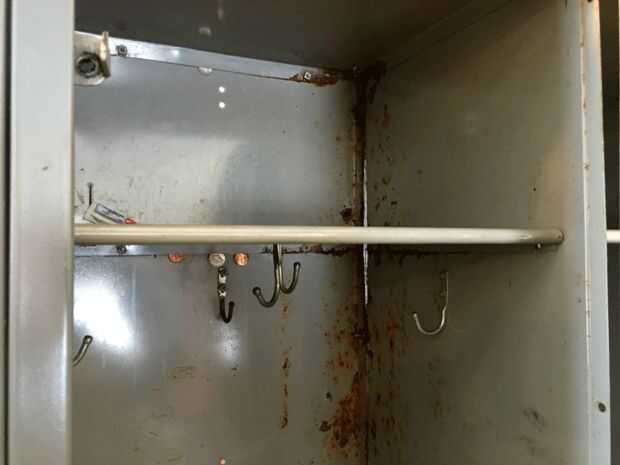STOP, Hammer Time! Mortifican... -movimiento... Estas taquillas no fueron tratados con atención y tenían muchas abolladuras. Unos golpes escuchar, algunos flequillos allí y los armarios eran menos cuadrado otra vez. Hicimos nuestro mejor esfuerzo para suavizar la peor de las abolladuras y los otros a la izquierda. Creo que añadieron el "carácter" de la construcción en la general o así decirle a la gente cuando les señalan.