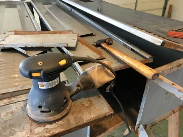 Una vez que se retiraron los bits adicionales y piezas hemos pasado unos días con la lijadora. Había rascado la pintura sin moho y trató mejor a la arena hacia fuera todos los bits oxidados que pudimos encontrar.