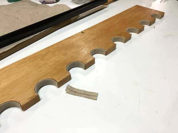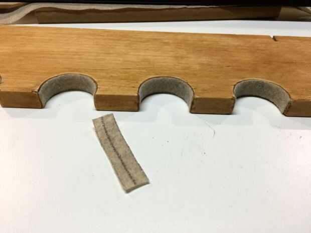 Esto resultó un poco mejor de lo que esperaba. He medido la anchura de la madera y cortar una tira larga de fieltro. Fuera de esto corté pedazos individuales que medir la curva de la madera. Pegar, fijar, liso. Resultó bastante rematadamente bueno! La madera sí mismo tenía una mancha de luz aplicada, lija y luego otro rápido de la capa.