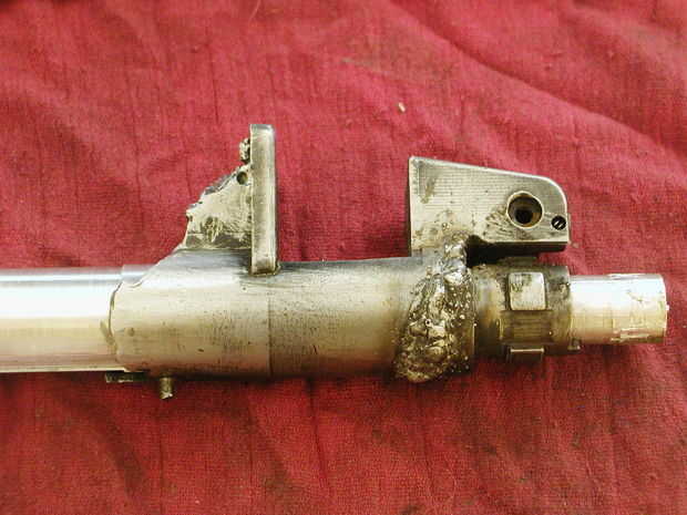 Bueno, suelda con autógena. Y después de un montón de moler y algunos realmente molesta mano-presentación para entrar en el espacio alrededor de la parte inferior de los gorrones, aceptado realmente el cañón y la cubierta del barril.
