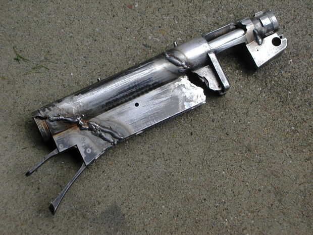 Entre el pésimo soldador primera y la falta de plantillas adecuadas durante las primeras soldaduras--además de mi ignorancia de lo que las dimensiones críticas y cómo las otras partes realmente caben - hice un lío bastante justo de las placas laterales y cañón. Y fue un momento raro con Dremel y mano para limpiar cosas bastante donde el resto de las piezas comenzó montaje dentro otra vez.