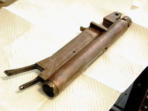 Después de limpiar el azulado con hisopos de algodón, maté el proceso en un cubo de agua. Secado a mano, fue sobre él con lana de acero, luego otra vez.