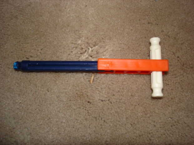 arma viejo. Mi primer original. Pequeño y eficaz demasiado! Buena potencia para su tamaño. Prefiero tener una catapulta Nuclear táctica de Fat Man. Oh wellz. : DDDDPaso 1: partes Conseguir estas piezas.Paso 2: pistola Build this.Paso 3: goma Para que