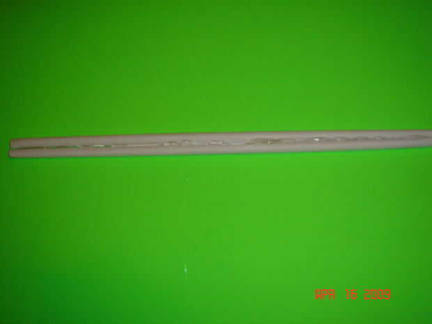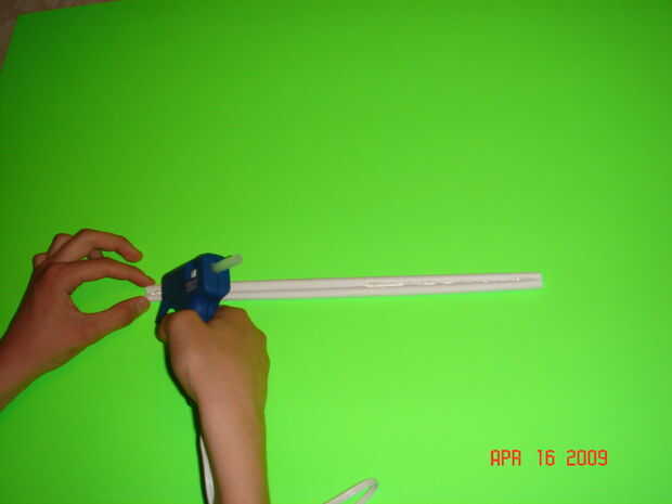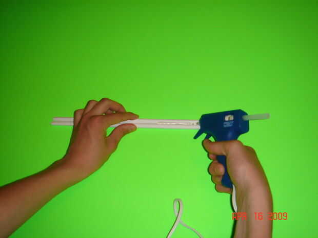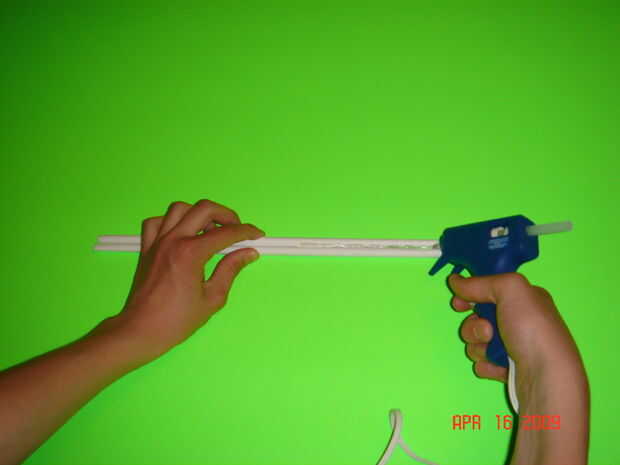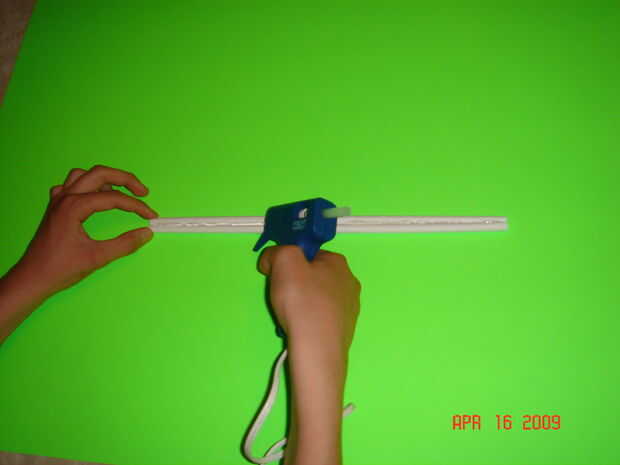 Para fines de instrucción le llamaremos a esta parte la cámara. Tomar dos de los tubos más débiles que usted a hecho y (sólo en un lado) caliente pegarlos juntos. El lado que no caliente pegamento será donde configurar el dardo.