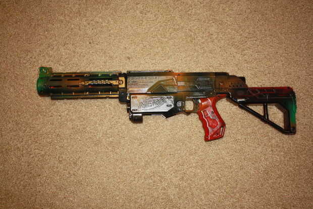aquí utilicé mi escopeta de carabina de tippmann Paintball.64 y colocado en una pistola de Nerf Longshot CS-6... Los resultados fueron bastante sorprendentes... Quería un arma más para paintball...Perdóname.. Si esto es mierda... Yo sólo construido e