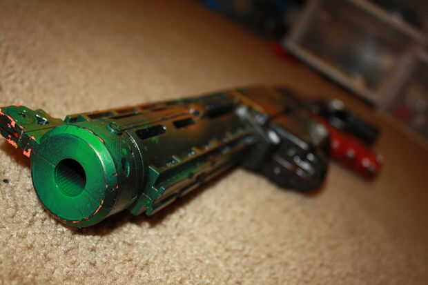 , Le dio el trabajo de pintura sloppiest imaginable... que es el punto porque es la resistencia. Sólo al azar rocía en naranja, verde y rojo. Logré el "moteado ' mira, apenas mantenga la boquilla en el verde.