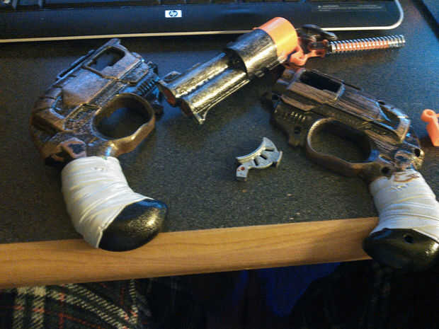 La parte negra de la manija se fija fácilmente cepillando a rápidamente en algunos pintura negra sobre las áreas que, pero ya no tengo a mano de pintura gris, te acabo de dejar la "envoltura" como estaba.