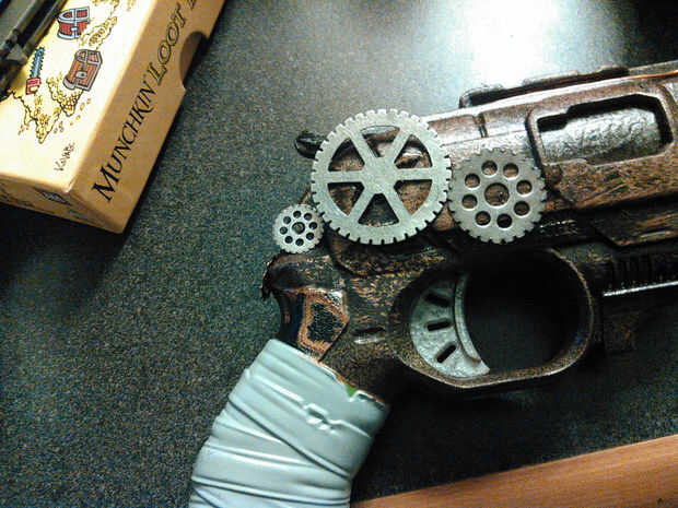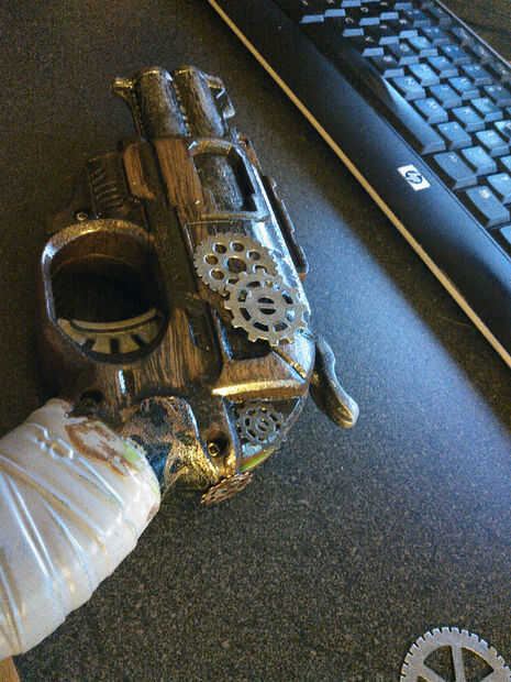 Esta parte es sólo limitada por la cantidad de chucherías y el pegamento que tiene a su disposición. Originalmente había intentado conectar algunas cañerías de latón a la pistola, pero sólo parecía más extraño que fresco y había hecho la pistola super pesados de frente.