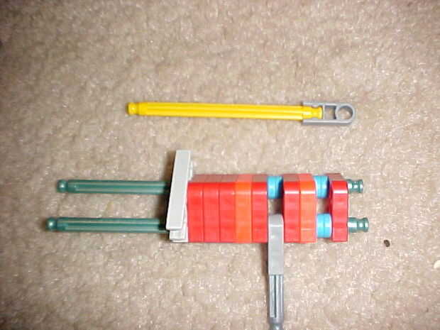 esta pistola es fácil de construir. Es poderosa por su tamaño pequeño. Este es mi primer instructable. Esta pistola dispara cerca de 25 pies.Paso 1: Piezas necesarias Fácil de construir. 7 conectores rojo. Gris 6. 4 amarillo. 1 naranja. 4 barras de a