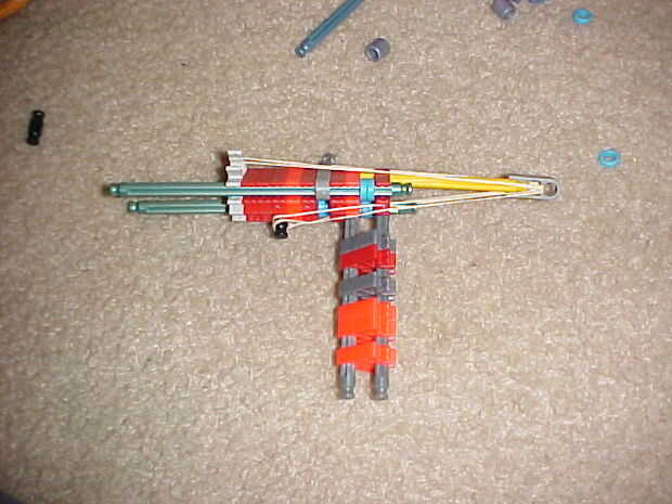 Tire hacia atrás el percutor. El gatillo debe bloquear automáticamente. Luego cargar la munición en el cañón. Las pequeñas barras de negro, las barras gris más grandes poco y rodamientos de bolas de gran trabajo. Mueva el gatillo a la izquierda para disparar. Crtisism constructivo Bienvenido, pero estaría bien... este es mi primer instructable.